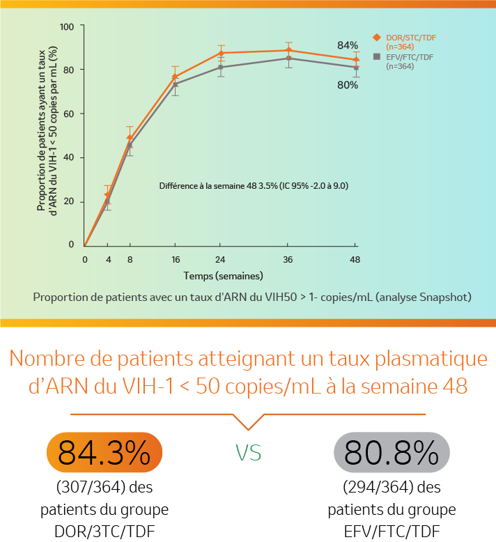 (Taux plasmatique d’ARN du VIH-1 < 50 copies/mL à la semaine 48)**