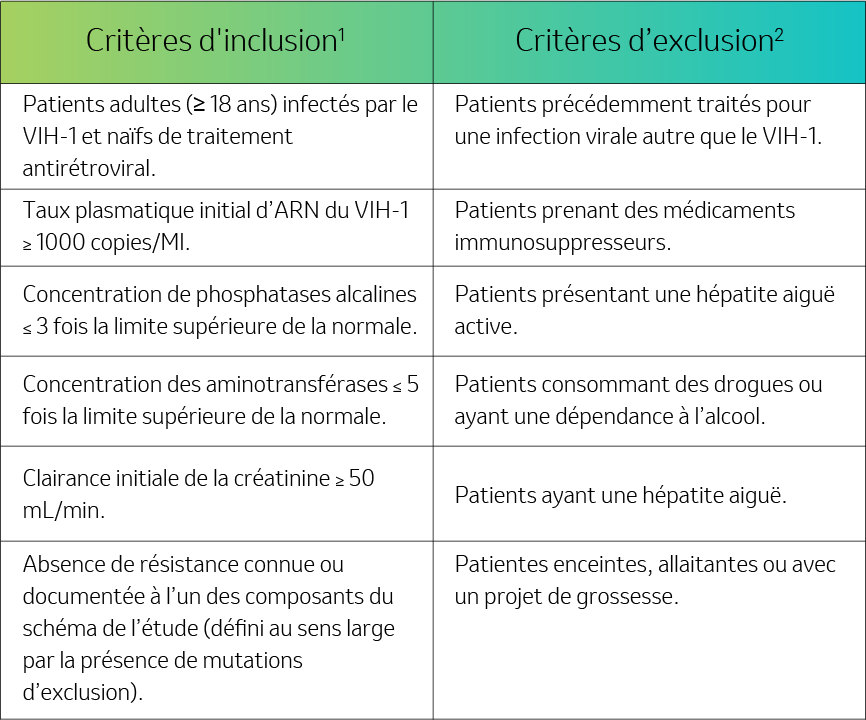 Critères d’éligibilité1,2