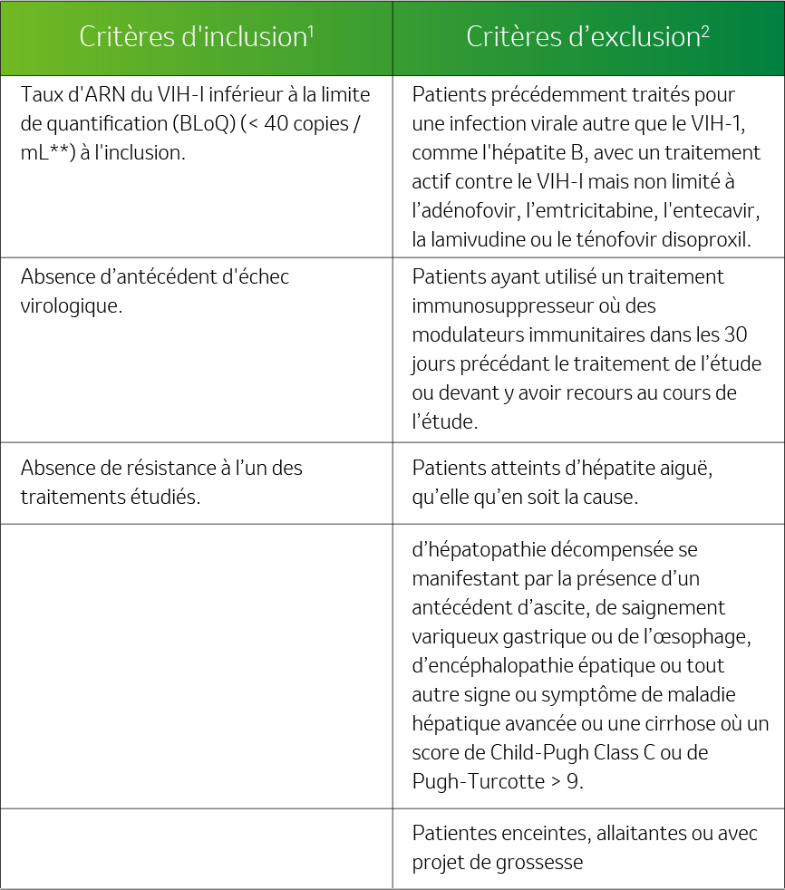 Critères d’éligibilité1,2