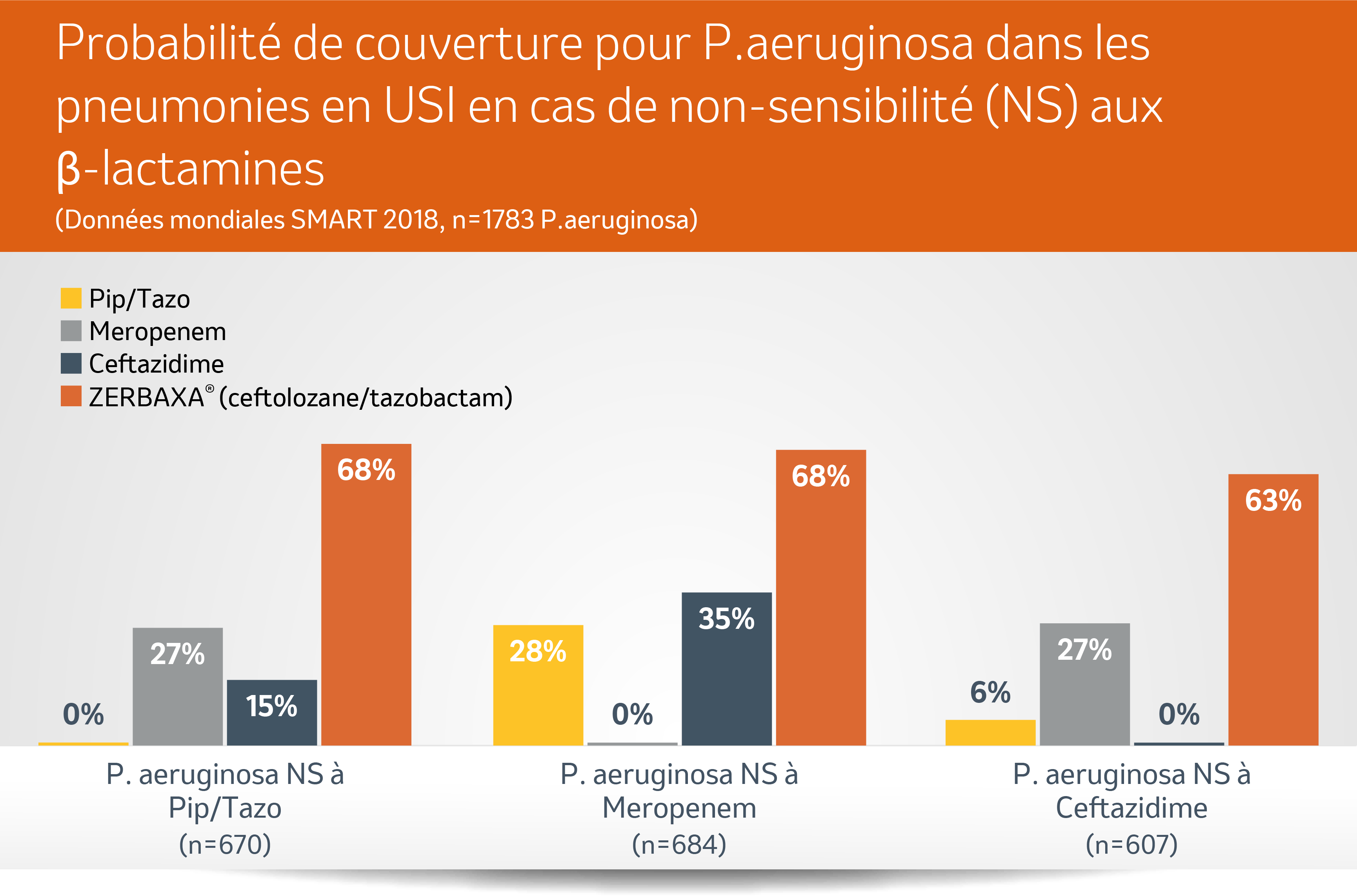 En présence d’une co-résistance aux β-lactamines, ZERBAXA® a montré des niveaux de sensibilité cumulés élevés1