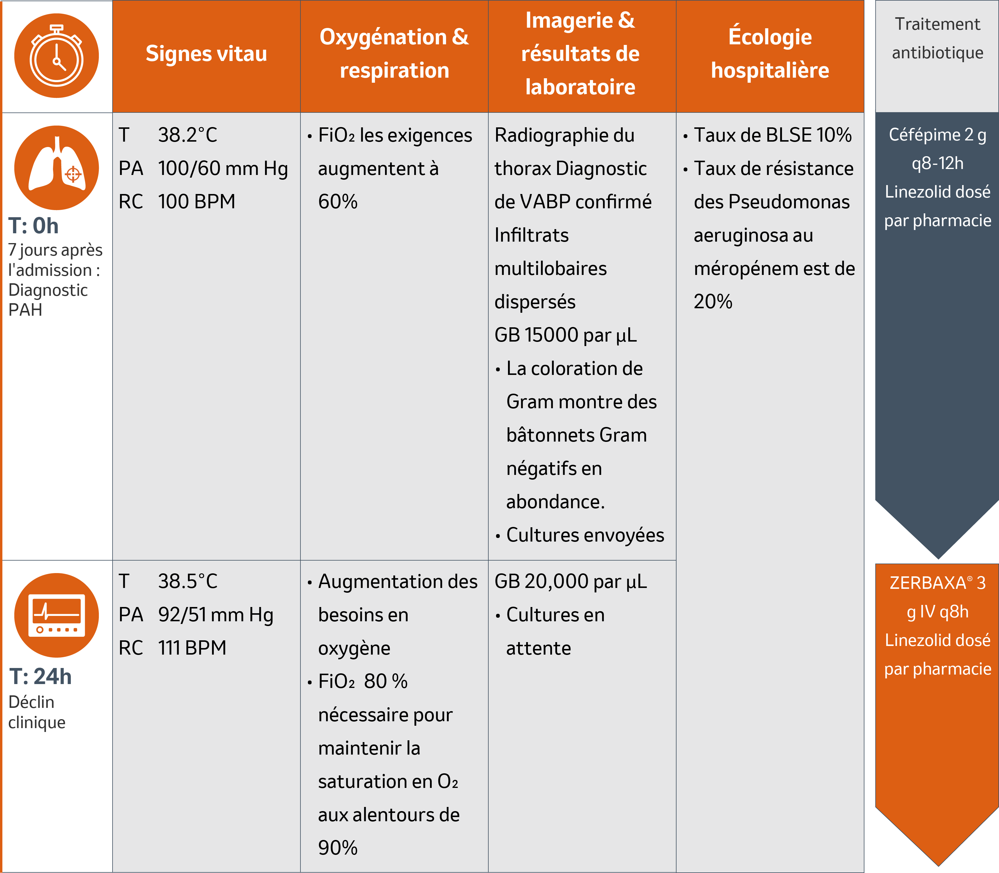 PBAV, pneumonie bactérienne associée au ventilateur; GB, globules blancs; T, température; BLSE, Bêta lactamases à spectre étendu.