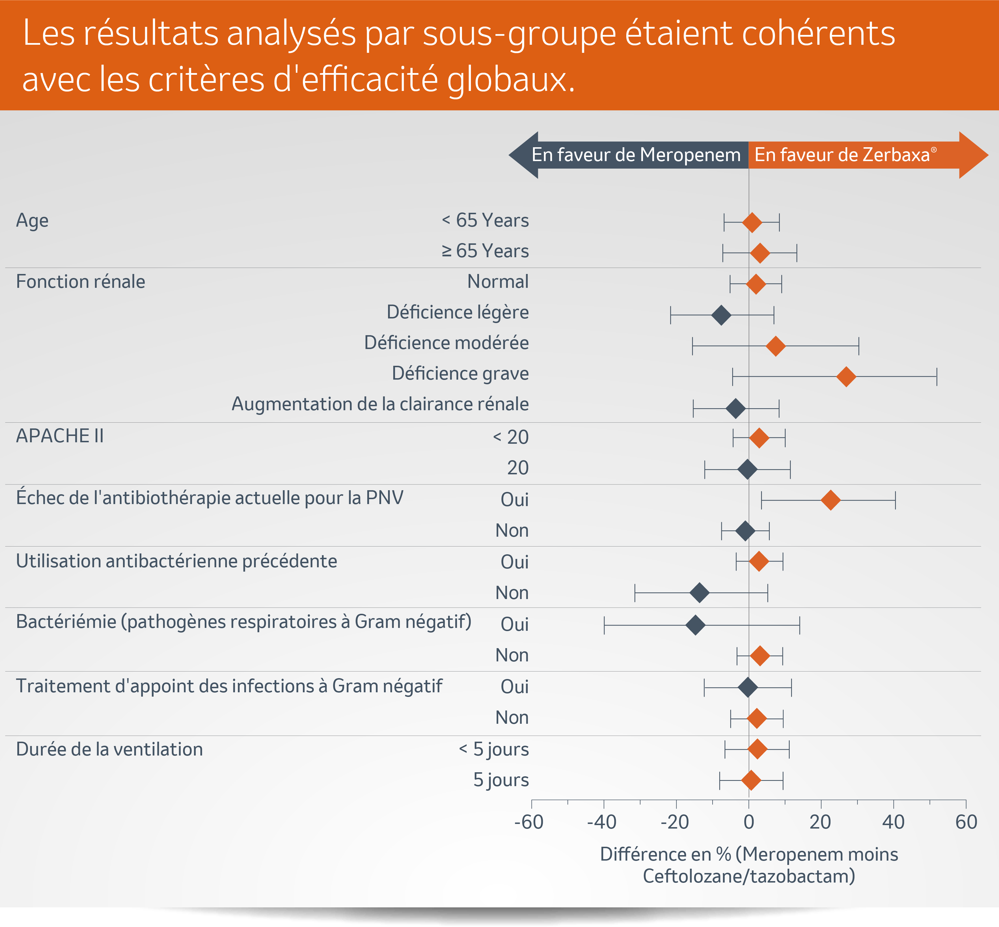 Les statistiques descriptives sont fournies pour des sous-groupes sélectionnés afin de caractériser une population IDT présentant une pneumonie nosocomiale sévère (diagnostic soit de PAV soit de PAH ventilée), et ne sont pas ajustées pour la multiplicité des cas.