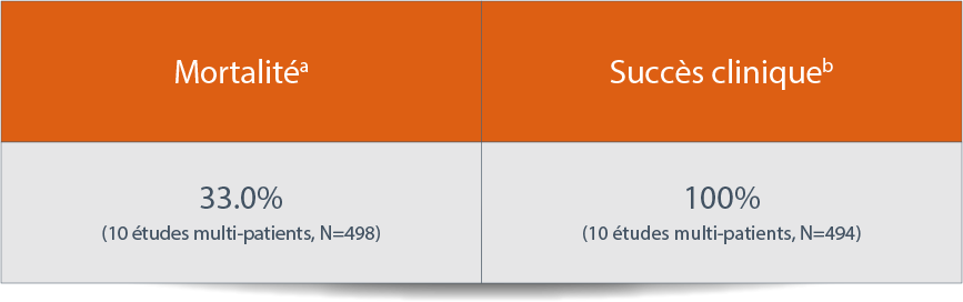 aLe taux de mortalité inclut, sans s’y limiter, la mortalité toutes causes confondues, la mortalité hospitalière ou la mortalité liée à l’infection.