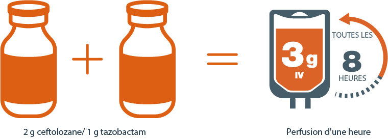 bToutes les doses de ZERBAXA sont administrées sur une durée d’une heure.